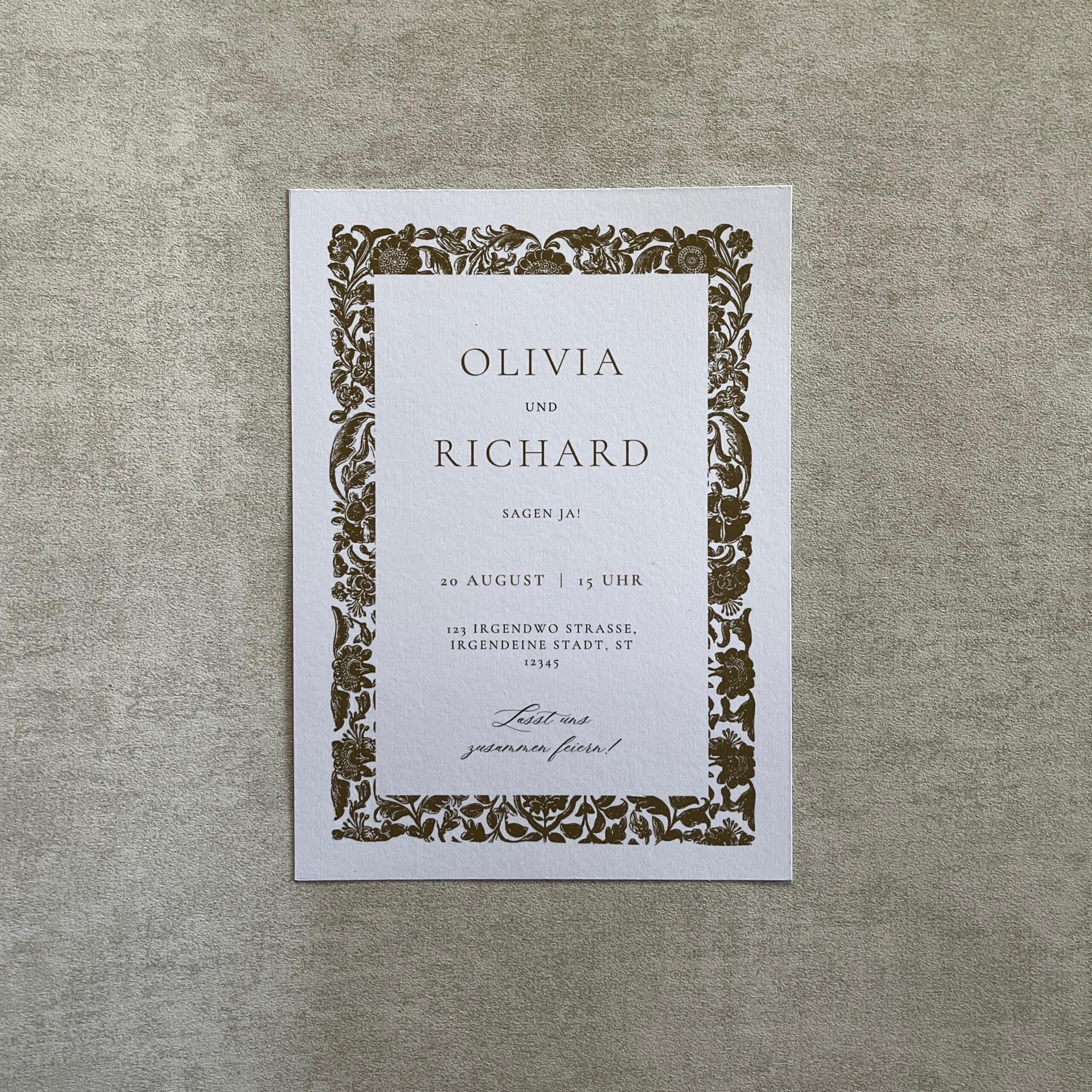 Verleiht eurer Hochzeit einen stilvollen ersten Eindruck mit unseren eleganten Hochzeitseinladungen „Romance“. Dieses edle Format kombiniert klassische Eleganz mit moderner Schlichtheit und bietet ausreichend Platz für alle wichtigen Informationen zu eurem großen Tag. Jede Einladung wird mit viel Liebe gestaltet und auf hochwertigem Papier eurer Wahl gedruckt.