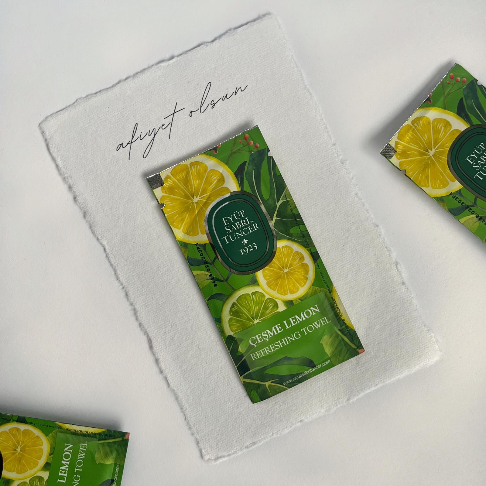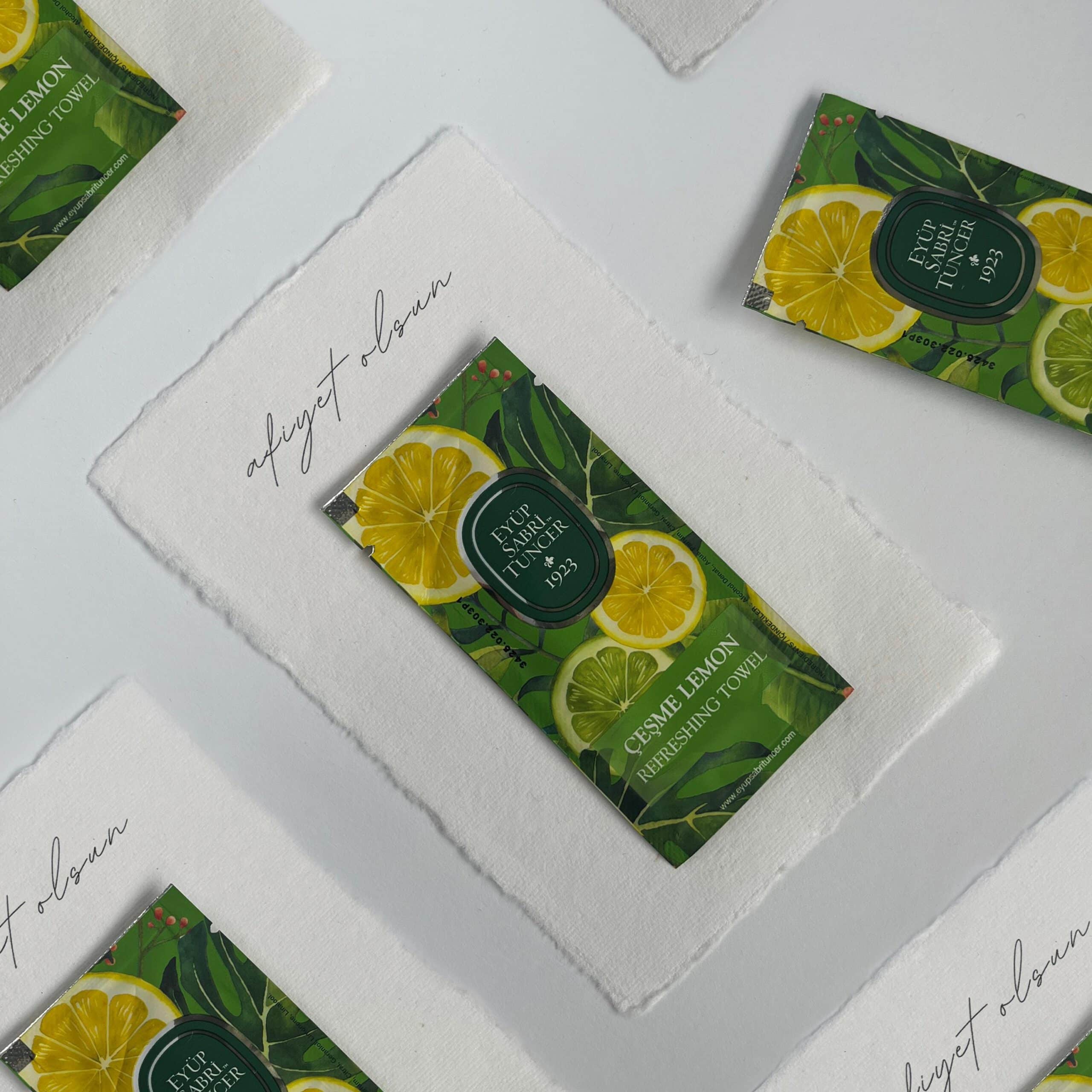 Tischkarte mit Erfrischungstuch